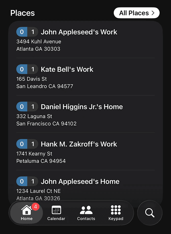 At the bottom of the Home screen, you’ll see “Places” or “Nearby Places.” This section shows the locations linked to your contacts, such as addresses or places where you’ve noted meeting someone. If you’re close to one of these locations, it will appear as “Nearby Places.” Tapping a place reveals more details about it, including the contacts connected to that location.